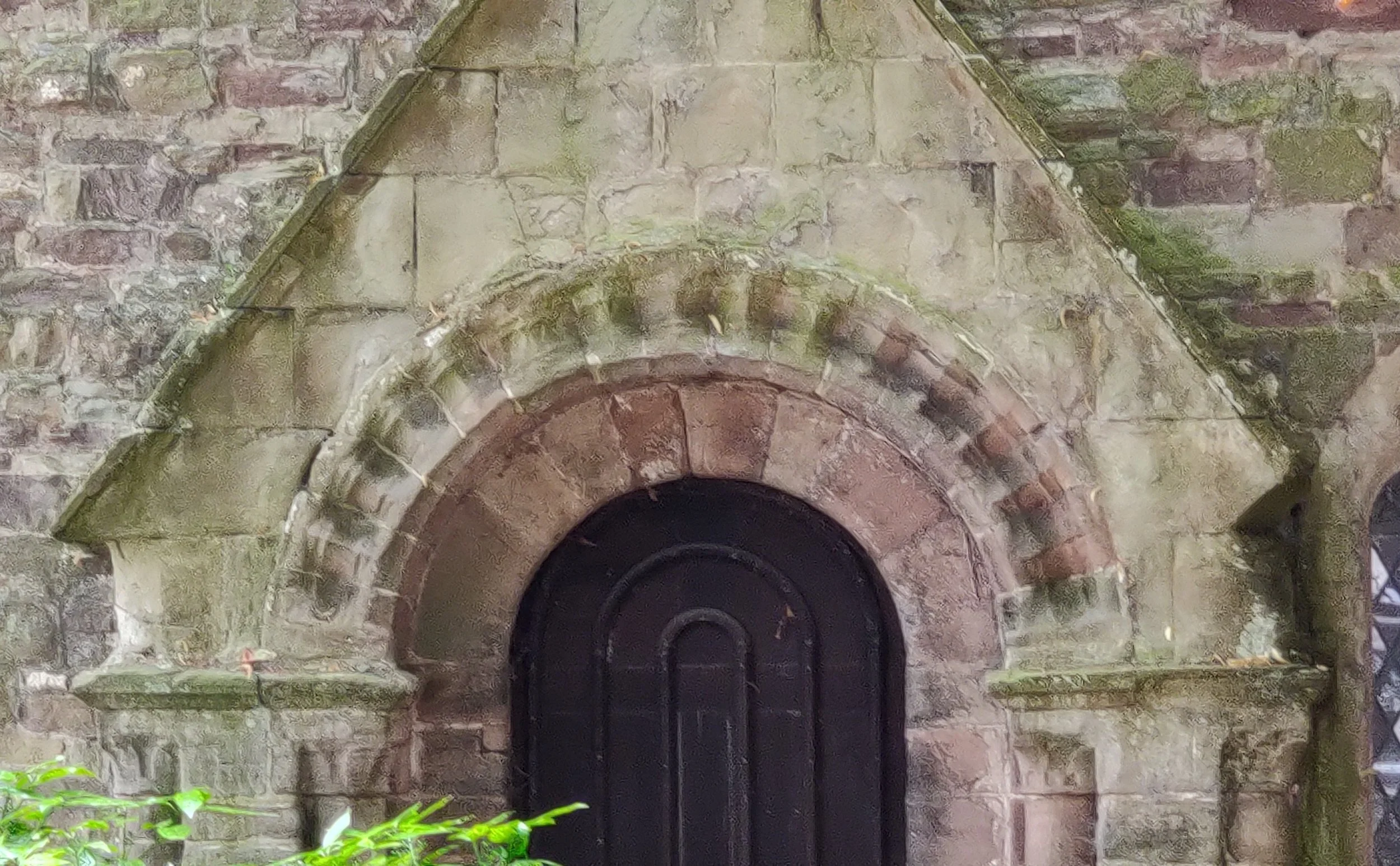 The arch over the road on the Overmonnow side of the gatehouse was rebuilt relatively recently in freshly dressed stone, but it was in place for long enough to accumulate lots of impact scars. It is dated 1989 (I think) on the inside face. The road was finally closed after construction of a new road bridge in 2004.